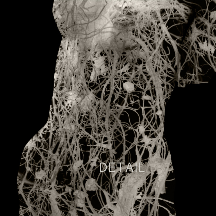 These images were created by sculpting clay for the figure, and photographing various textures, both natural and hand-made, to imply the transmutation of energy.